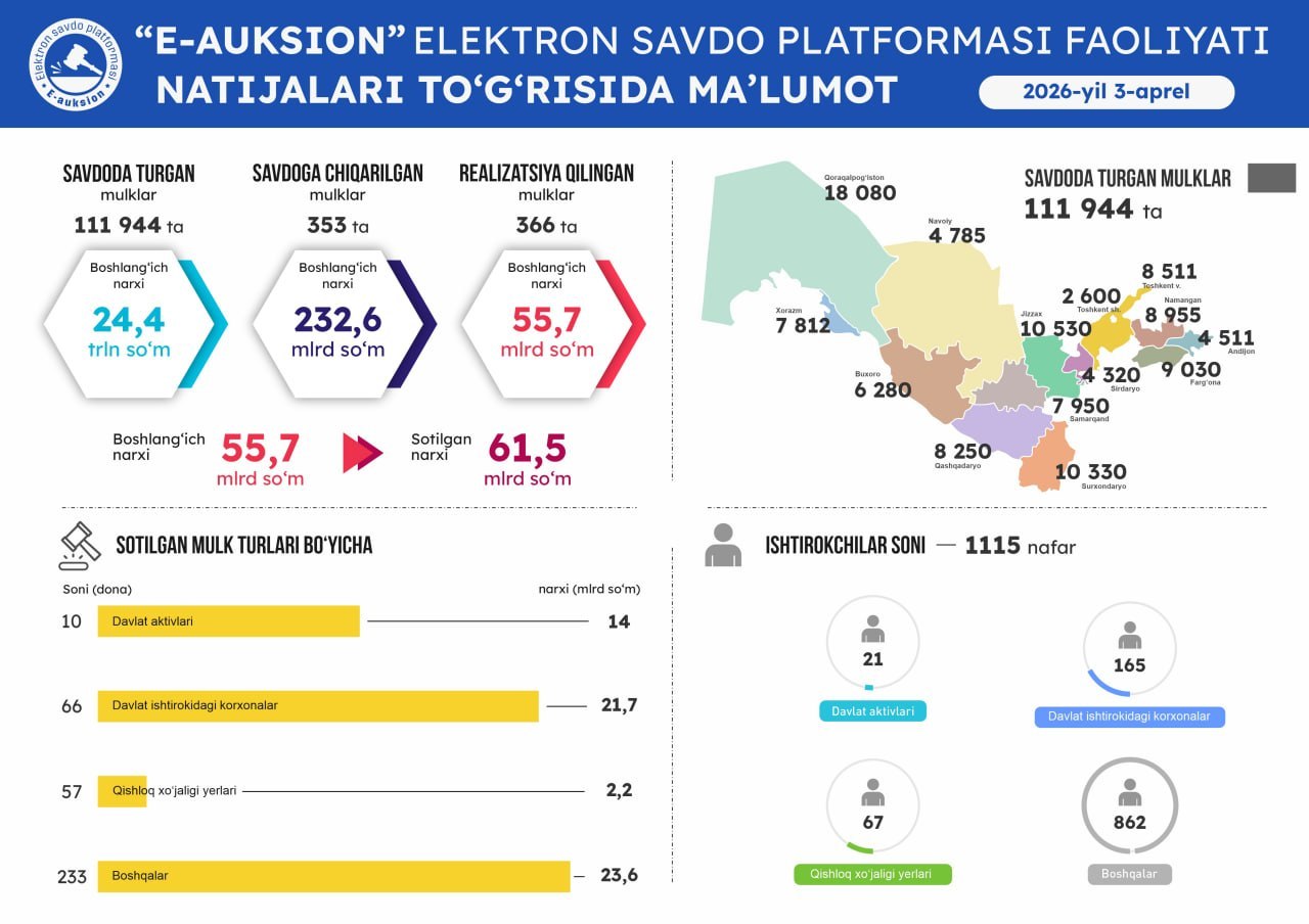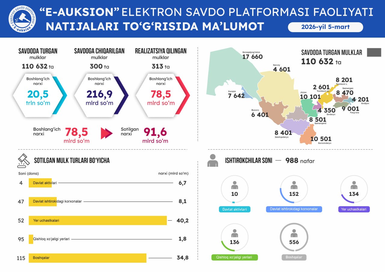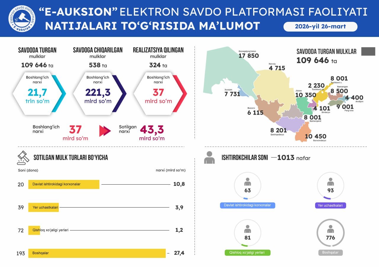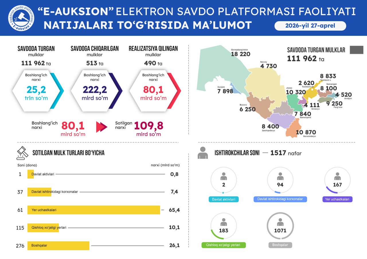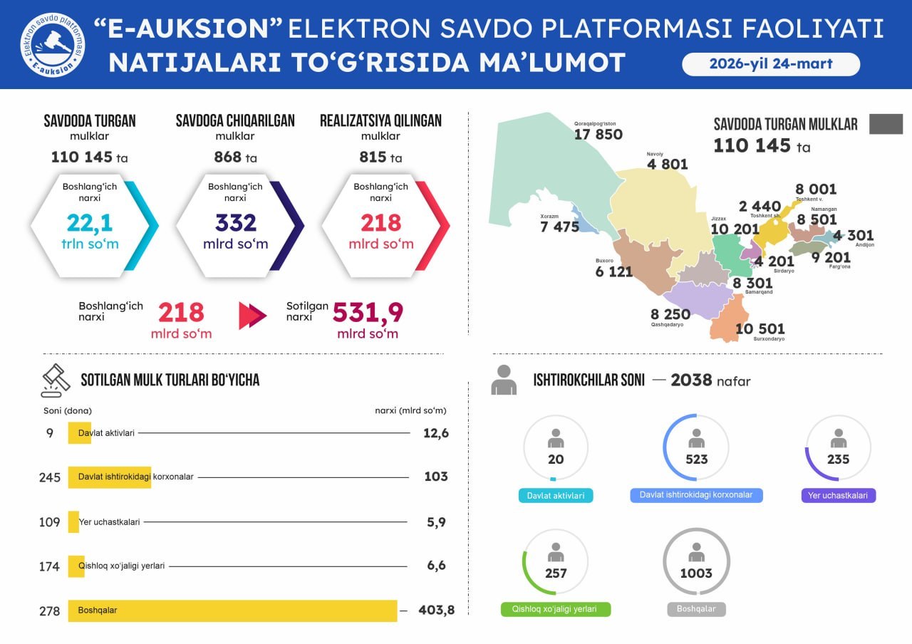 Оммавий савдоларга чиқарилган давлат активларини виртуал кўриш