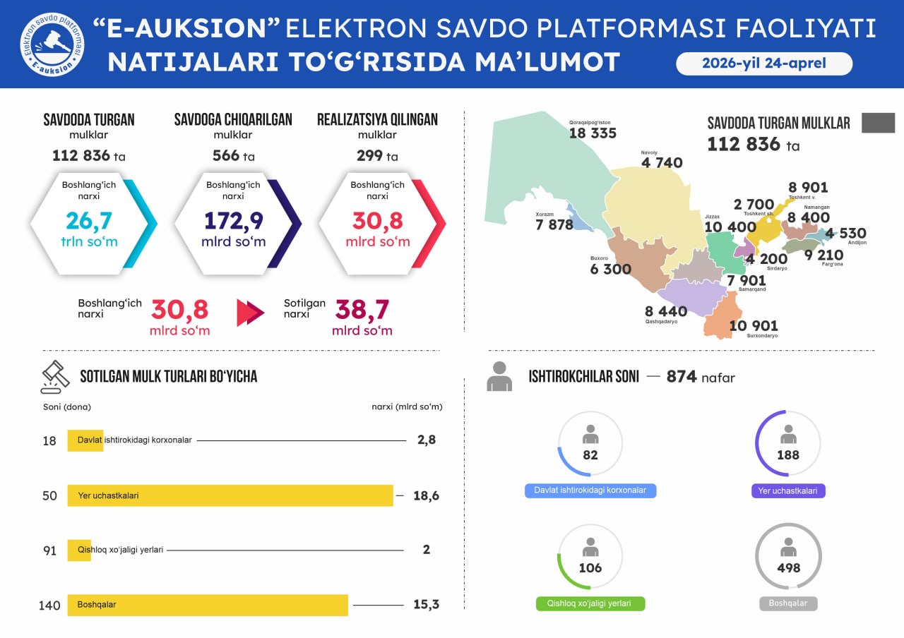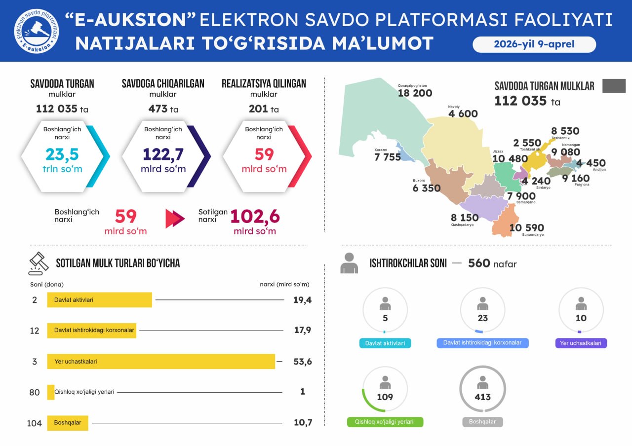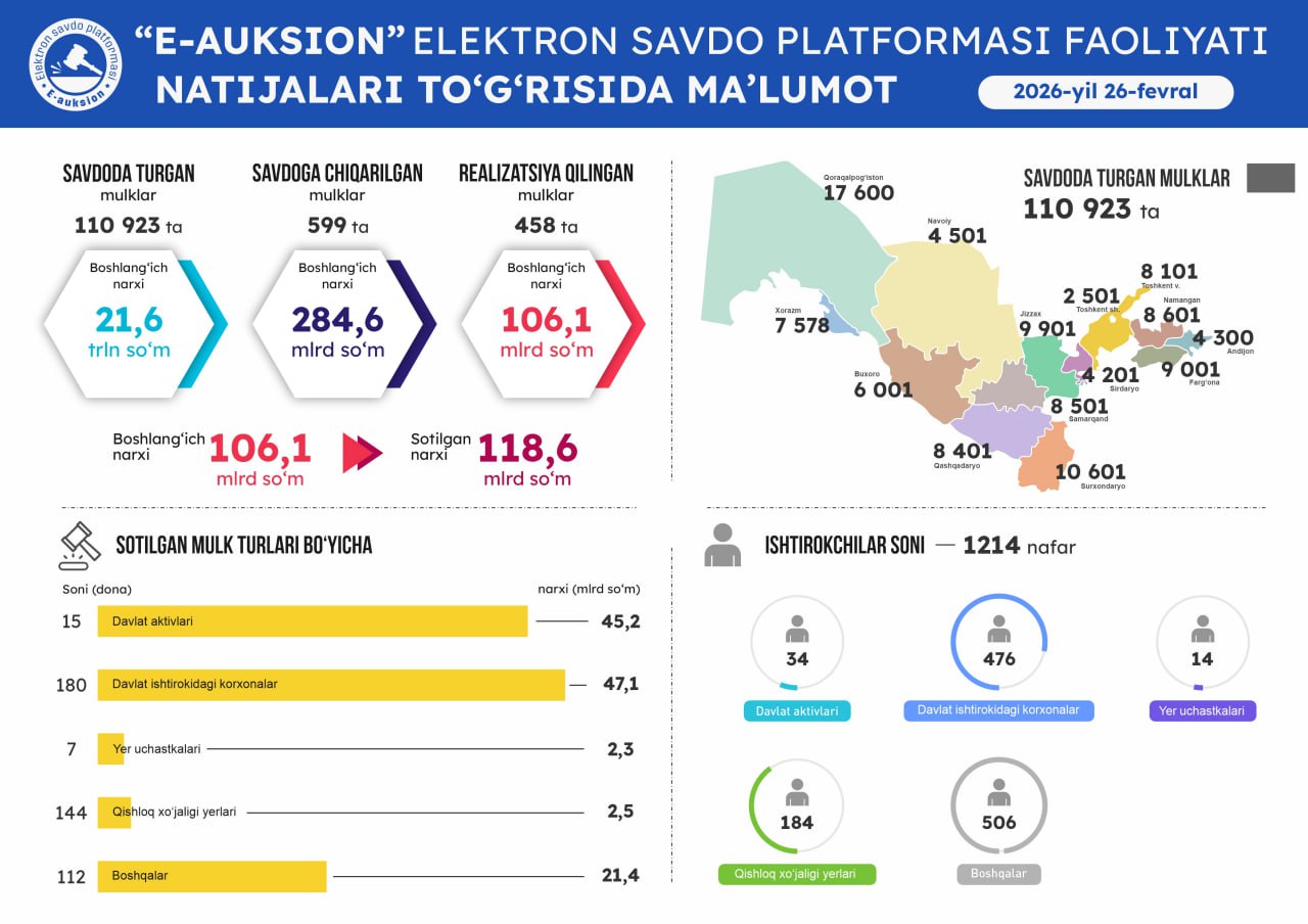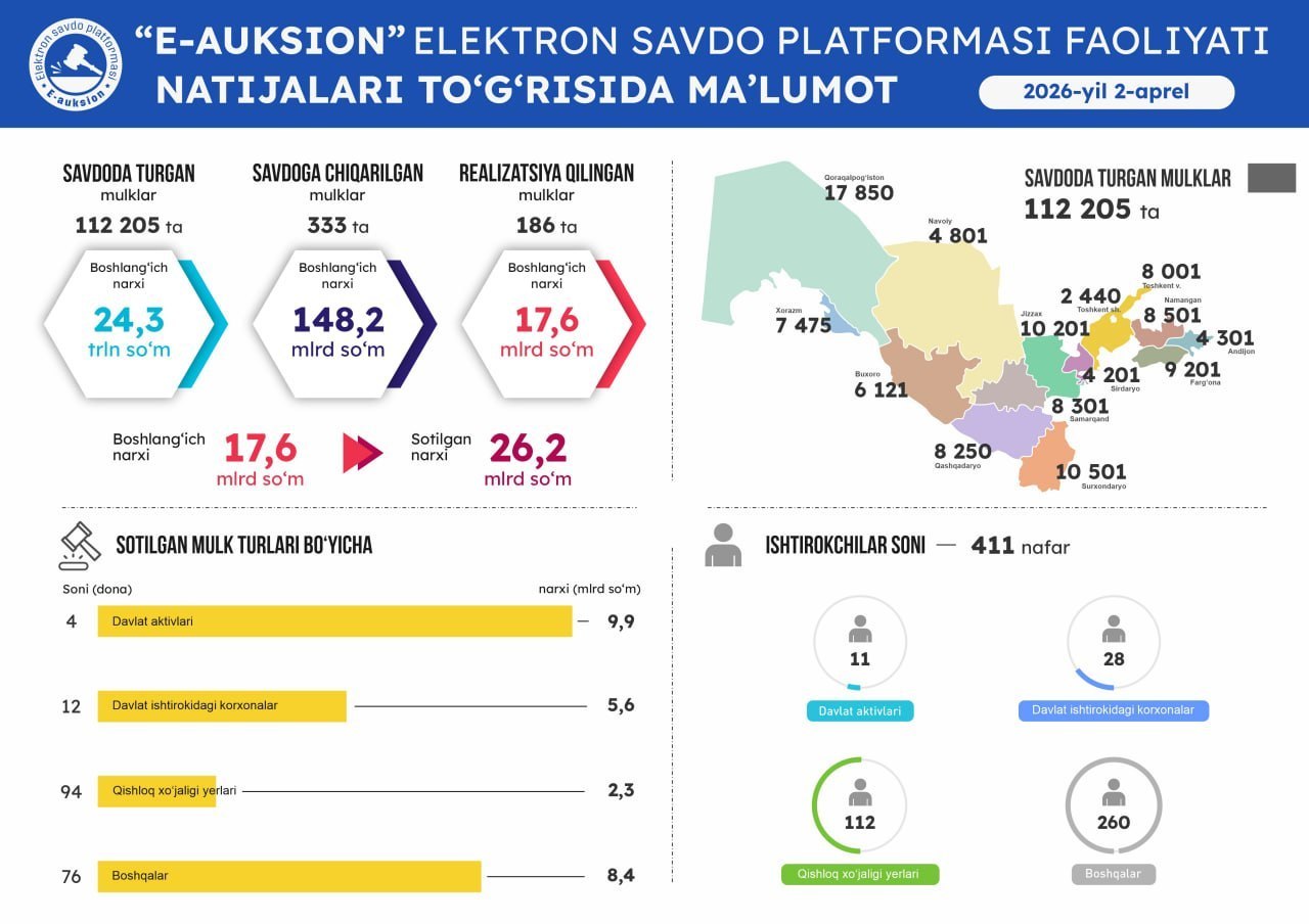 Оммавий савдоларга чиқарилган давлат активларини виртуал кўриш