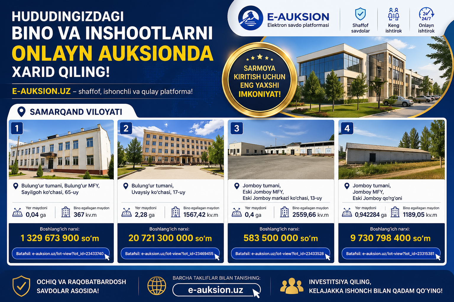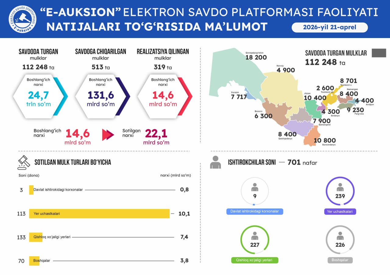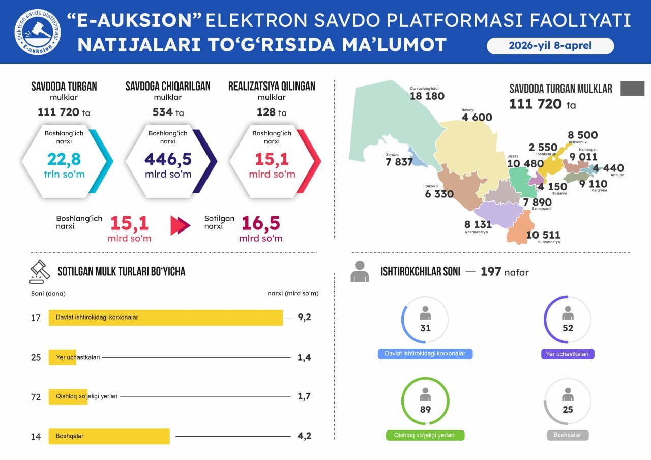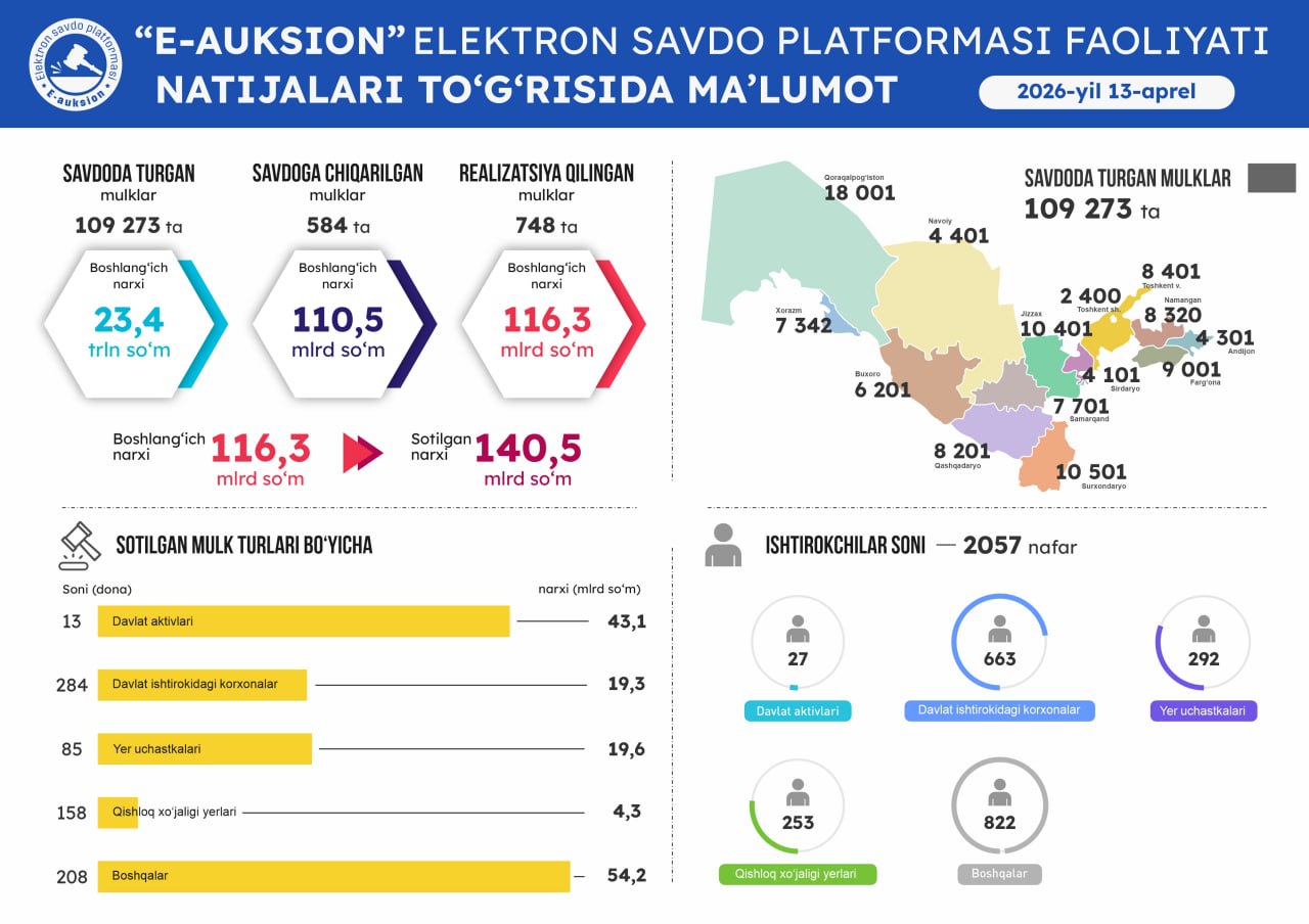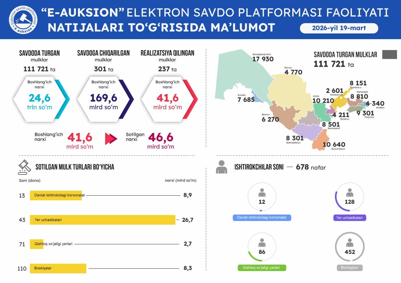 Оммавий савдоларга чиқарилган давлат активларини виртуал кўриш