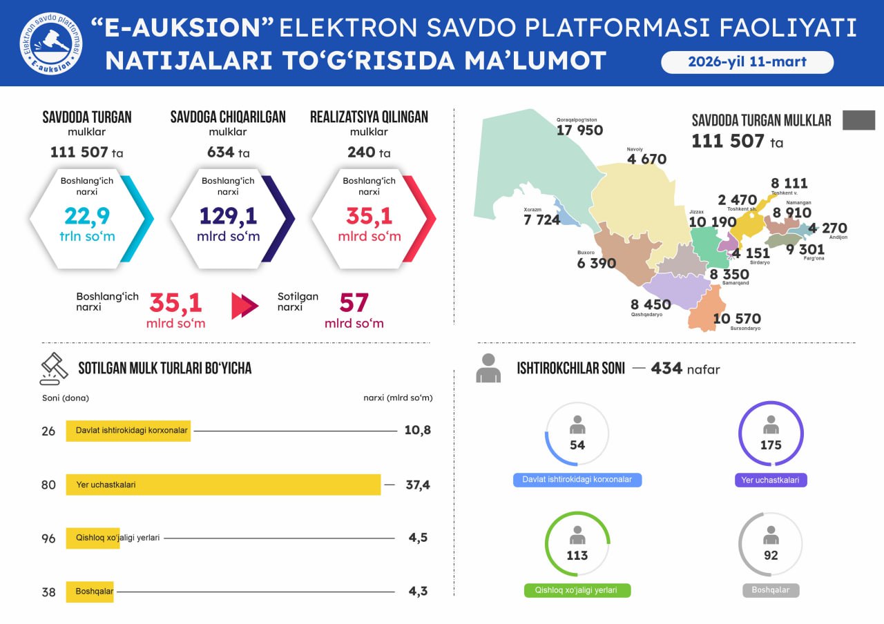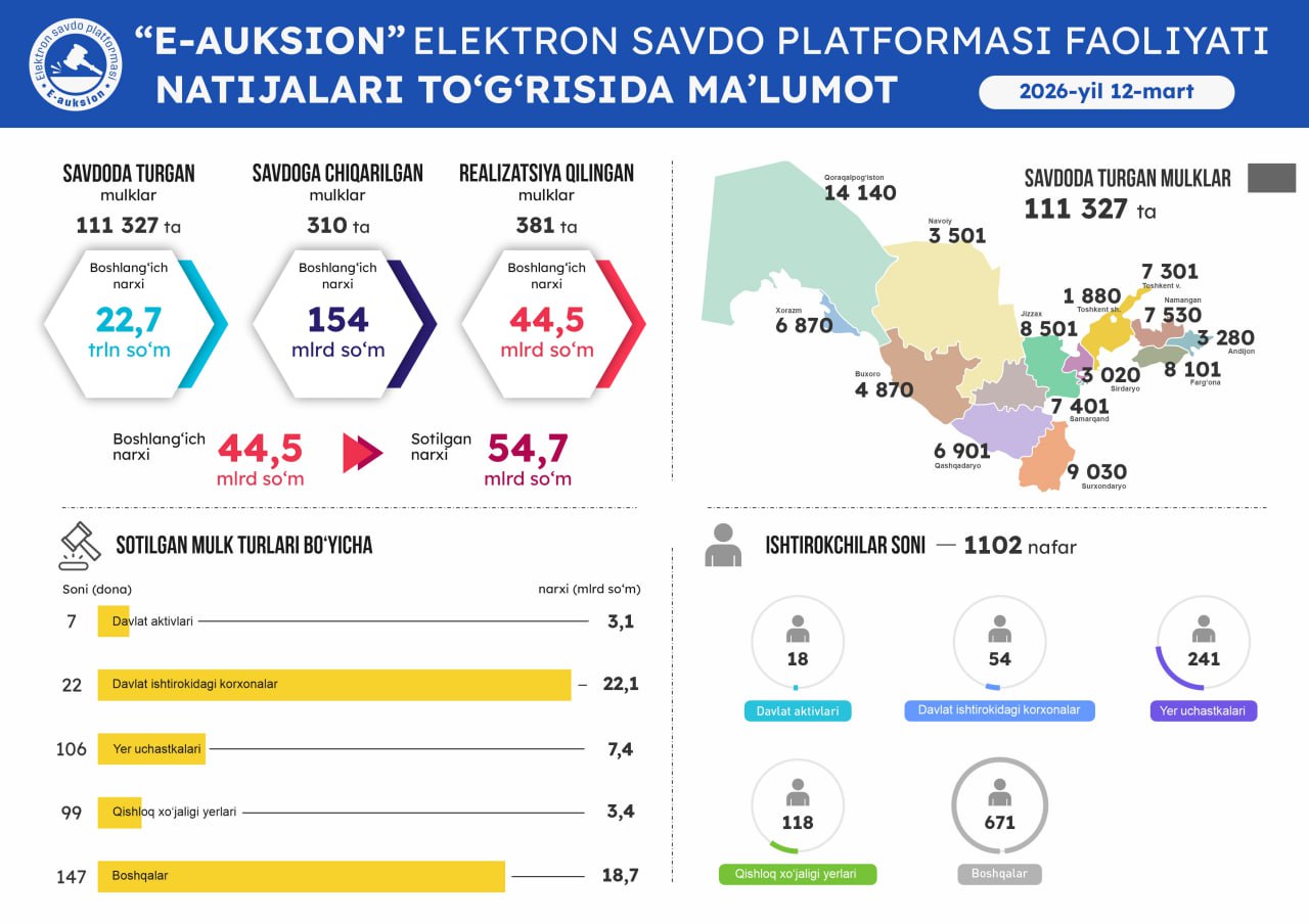 12-mart sanasida o'tkazilgan onlayn savdolar natijasi