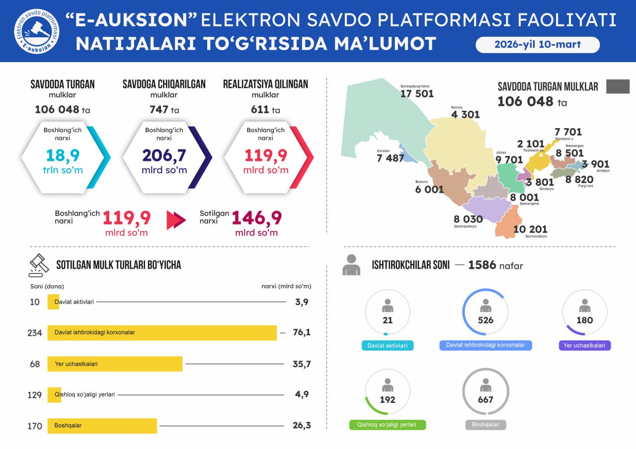 10-mart sanasida o'tkazilgan onlayn savdolar natijasi