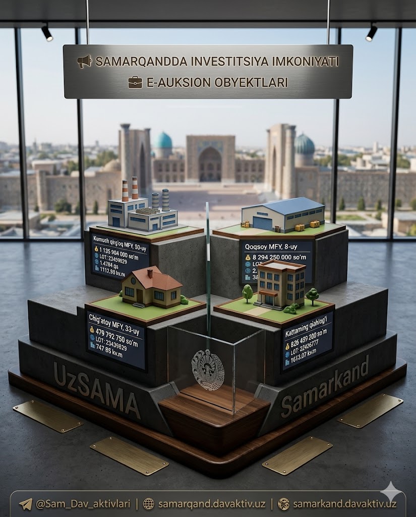 We inform investors interested in establishing entrepreneurial activities in the Samarkand region that the following buildings and structures are offered for sale through the e-auksion.uz platform.