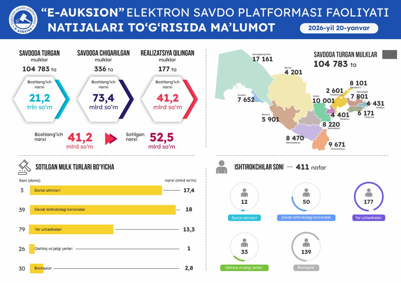 20-yanvar sanasida o'tkazilgan onlayn savdolar natijasi