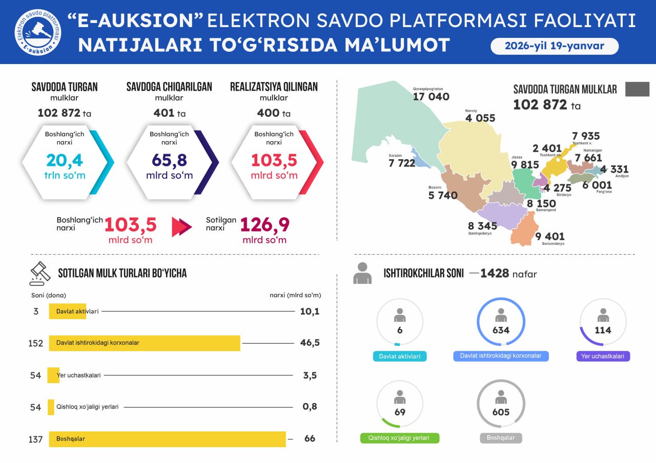 19-yanvar sanasida o'tkazilgan onlayn savdolar natijasi
