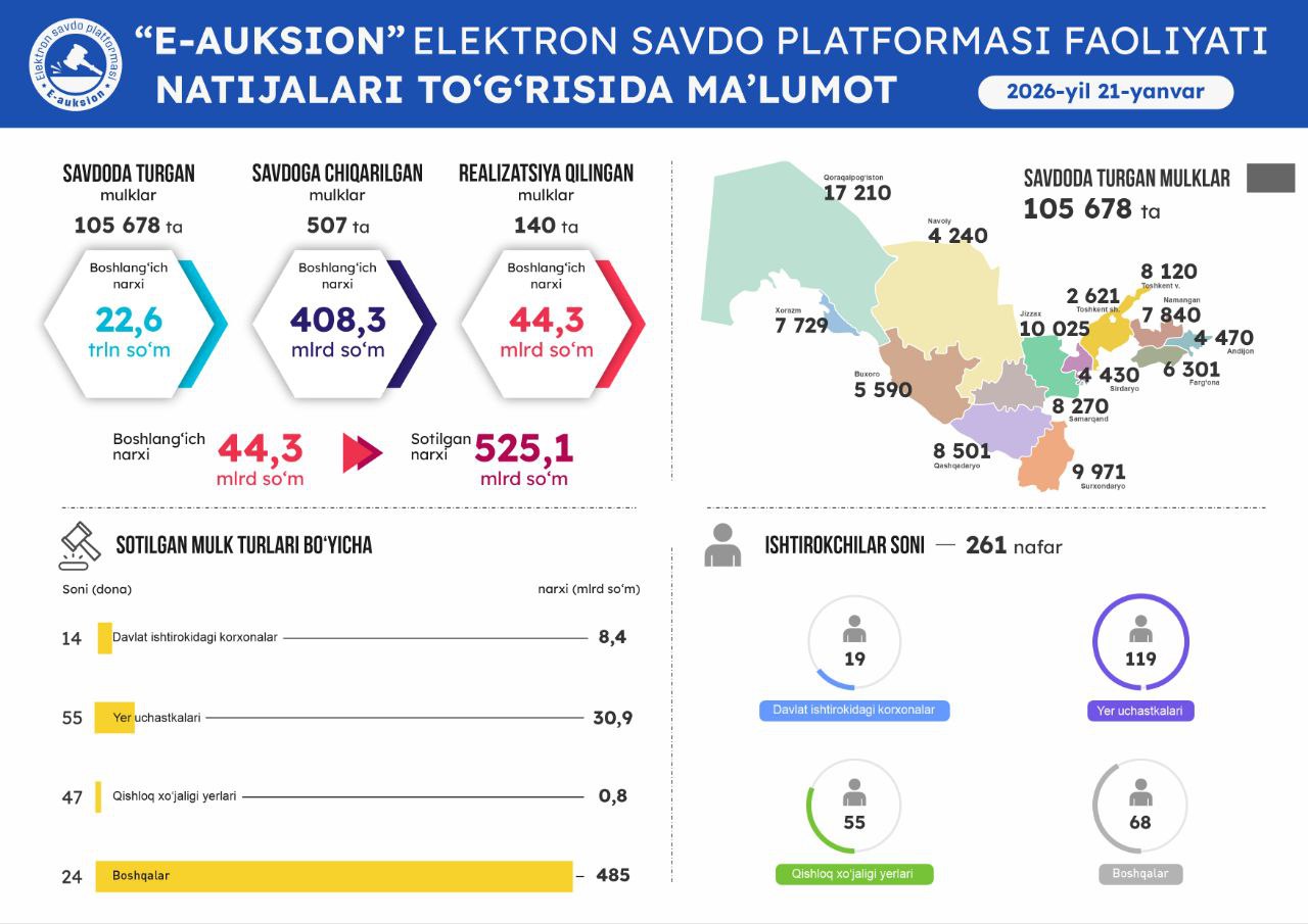 21-yanvar sanasida o'tkazilgan onlayn savdolar natijasi
