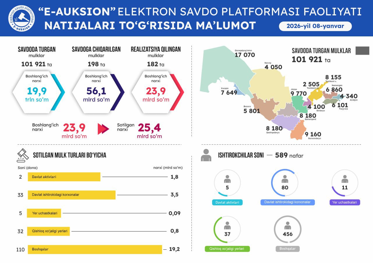 8-yanvar sanasida o'tkazilgan onlayn savdolar natijasi