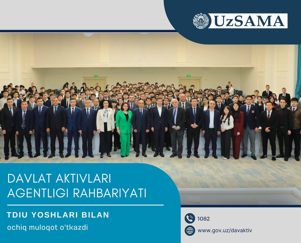 Davlat aktivlarini boshqarish agentligi rahbariyati TDIU yoshlari bilan ochiq muloqot o‘tkazdi