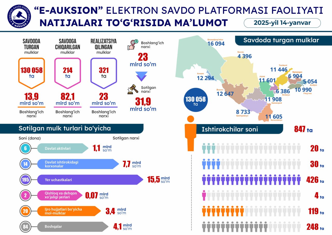 14-yanvar sanasida o'tkazilgan onlayn savdolar natijasi