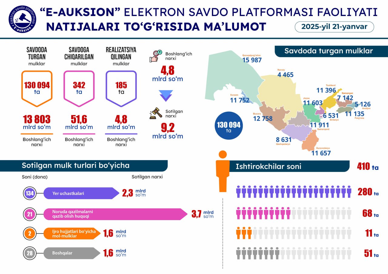 21-yanvar sanasida o'tkazilgan onlayn savdolar natijasi