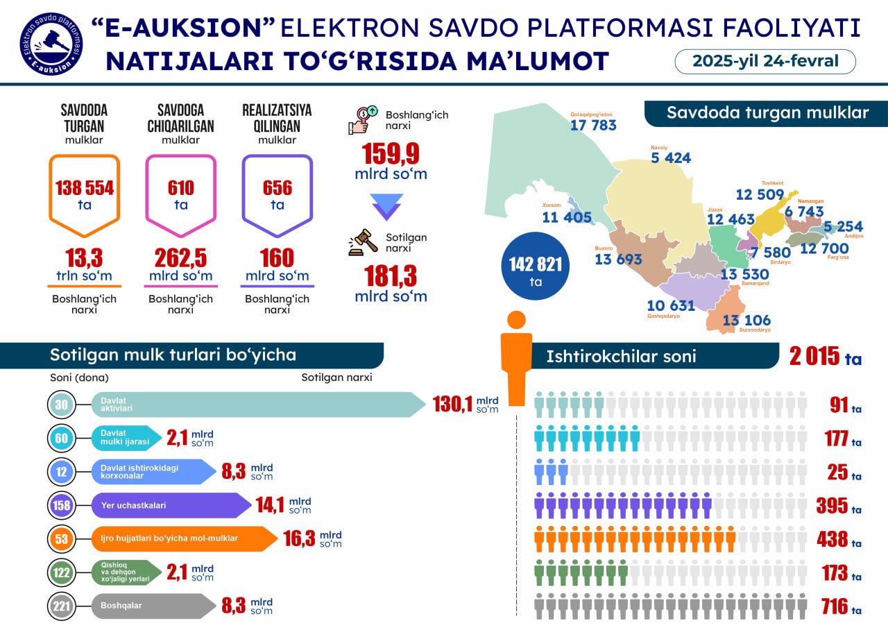 24-fevral sanasida o'tkazilgan onlayn savdolar natijasi