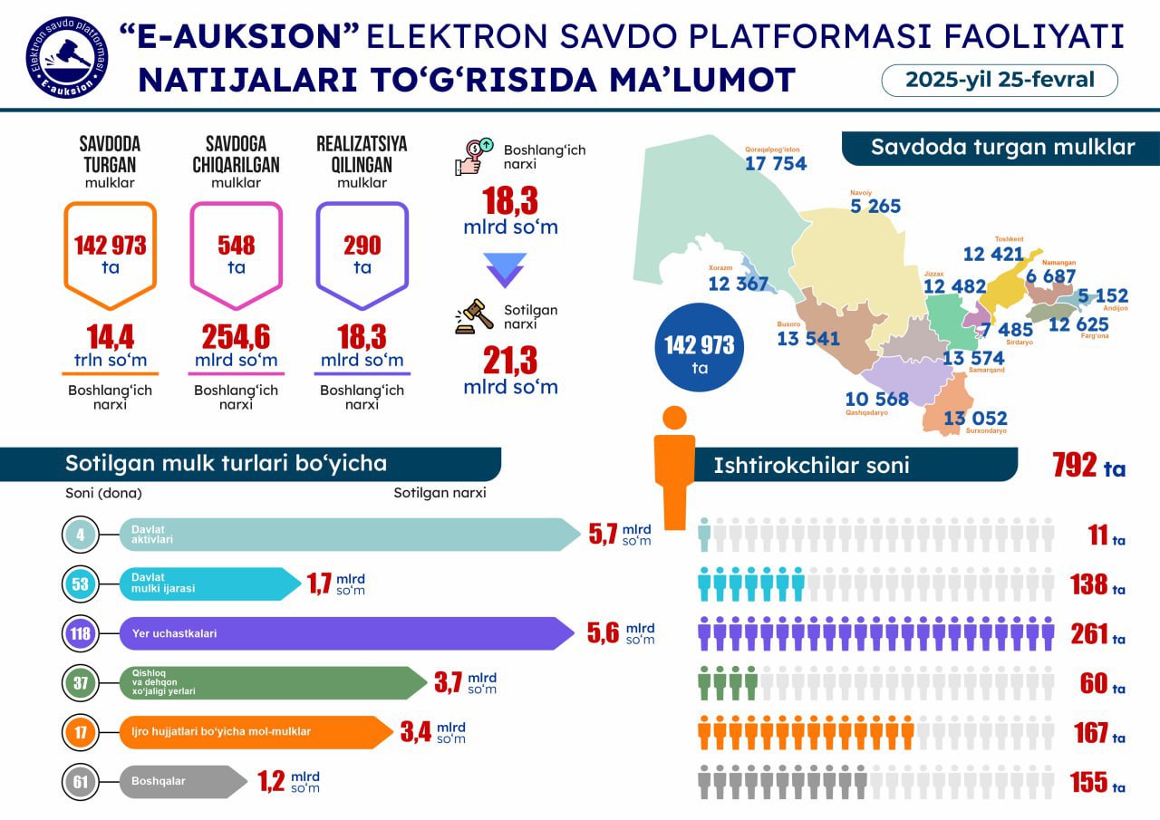 25-fevral sanasida o'tkazilgan onlayn savdolar natijasi