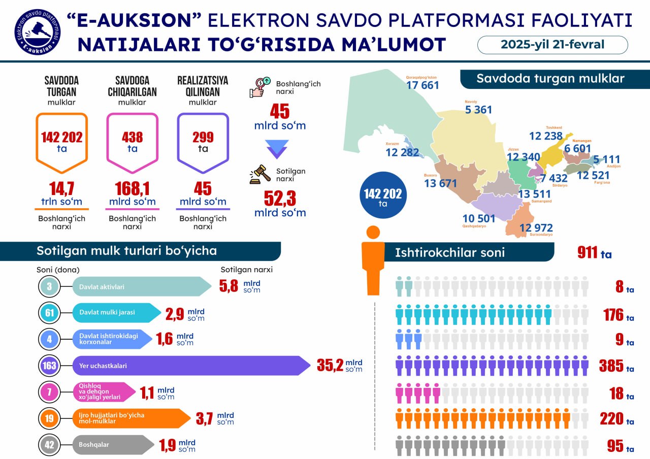 21-fevral sanasida o'tkazilgan onlayn savdolar natijasi