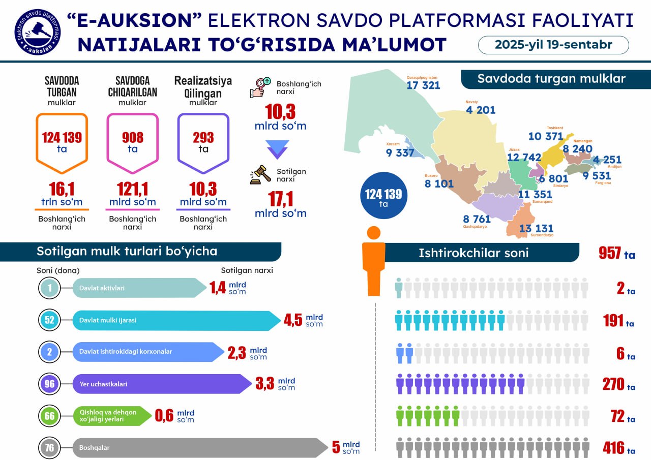 19-sentabr sanasida o'tkazilgan onlayn savdolar natijasi19-sentabr sanasida o'tk…