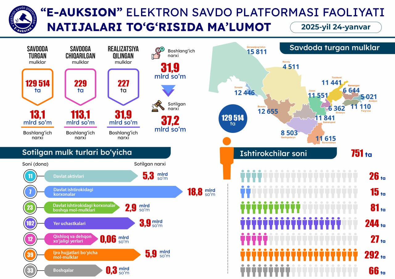 24-yanvar sanasida o'tkazilgan onlayn savdolar natijasi