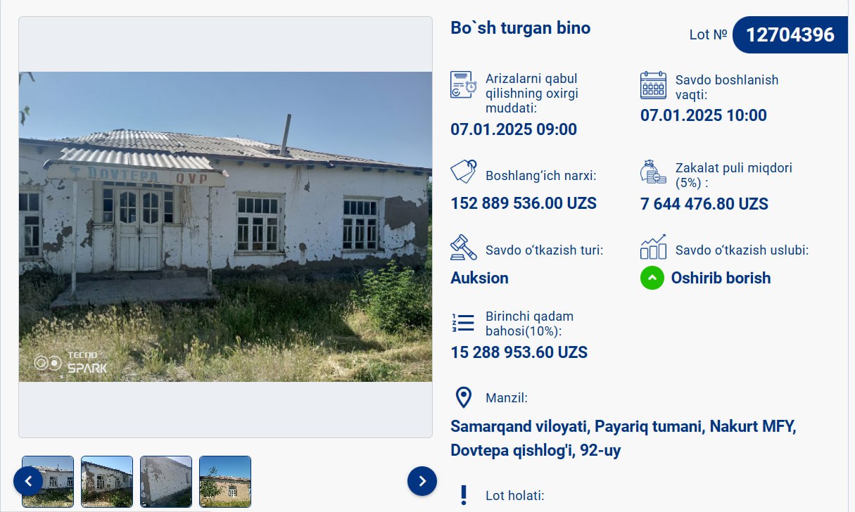 Hududingizda joylashgan bino va inshоoatlarni e-auksion.uz platformasi orqali xa…