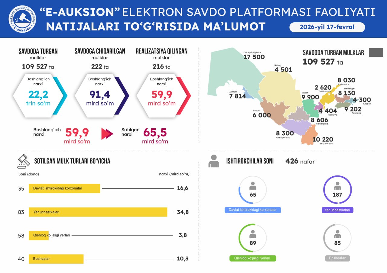 17-февраль санасида ўтказилган онлайн савдолар натижаси