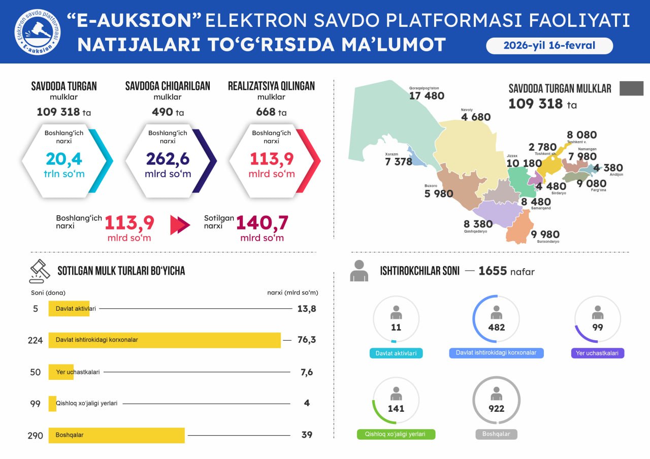 16-февраль санасида ўтказилган онлайн савдолар натижаси