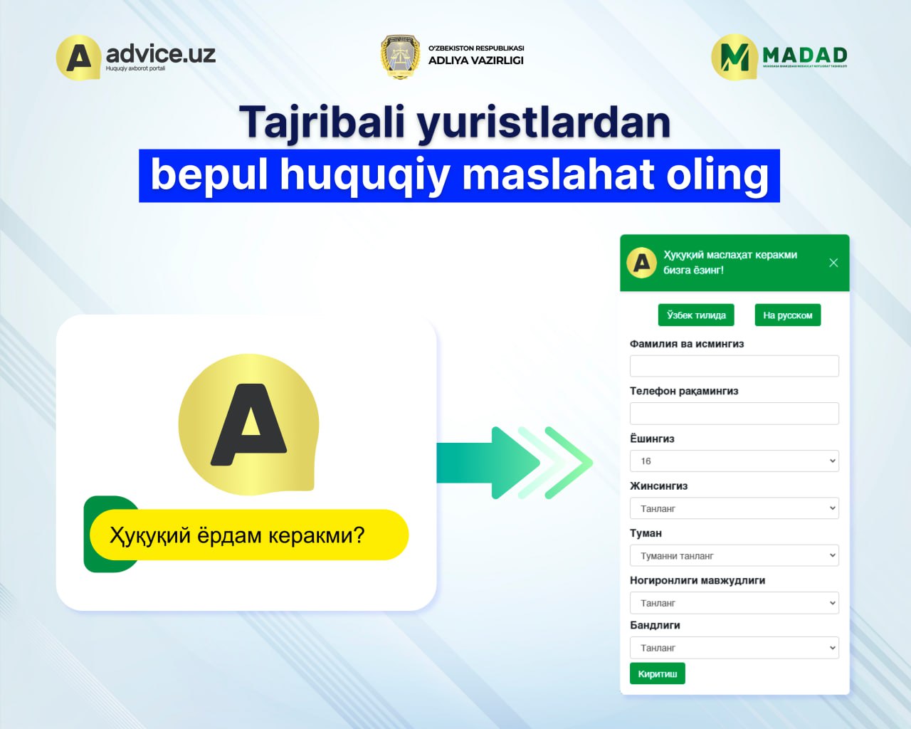 Tajribali yuristlardan bepul huquqiy maslahat oling