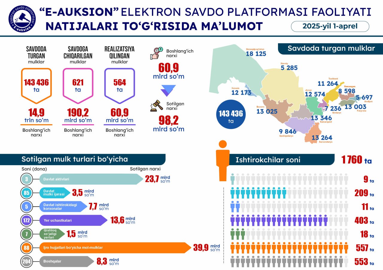 1-aprel sanasida o'tkazilgan onlayn savdolar natijasi