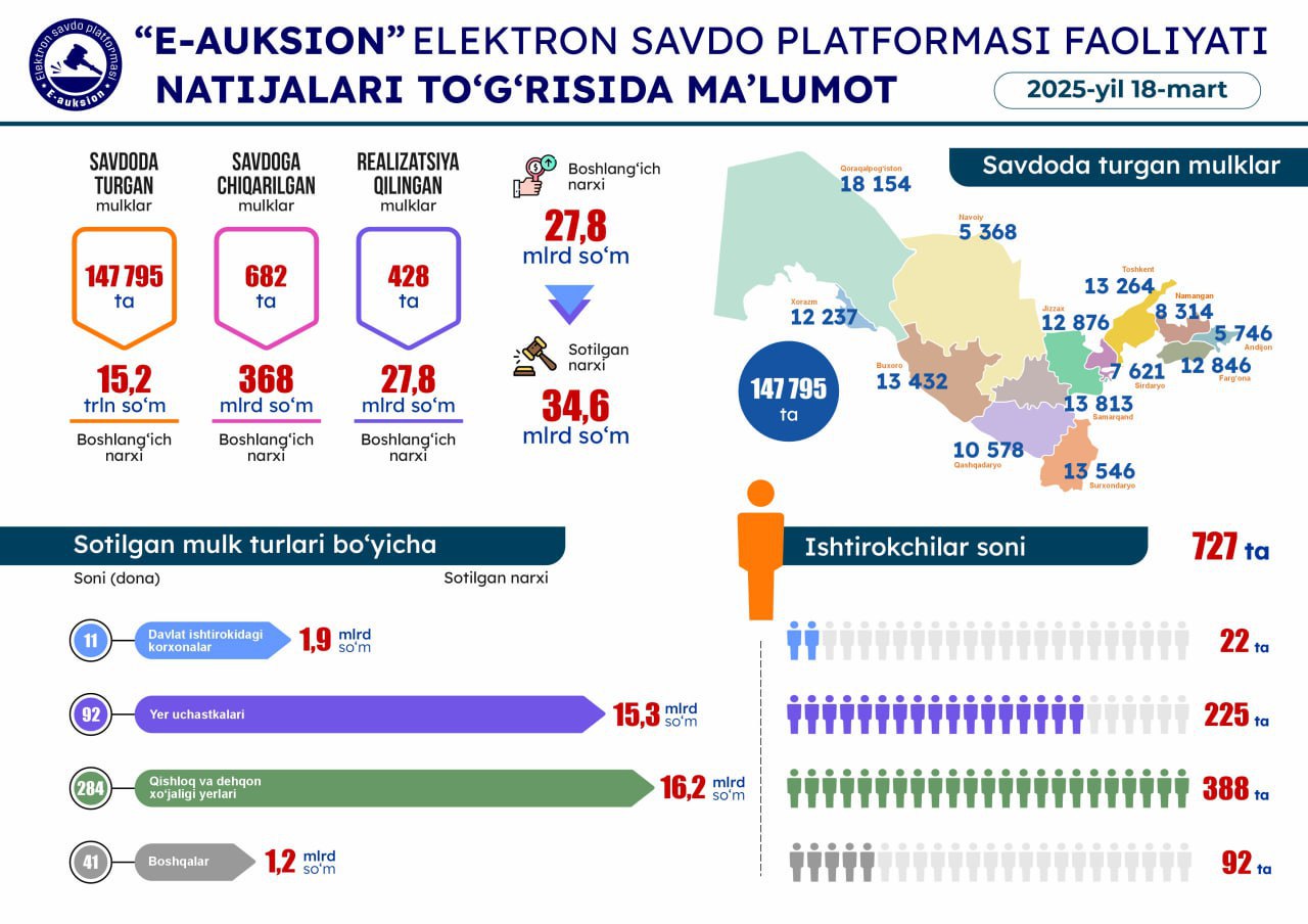 18-mart sanasida o'tkazilgan onlayn savdolar natijasi