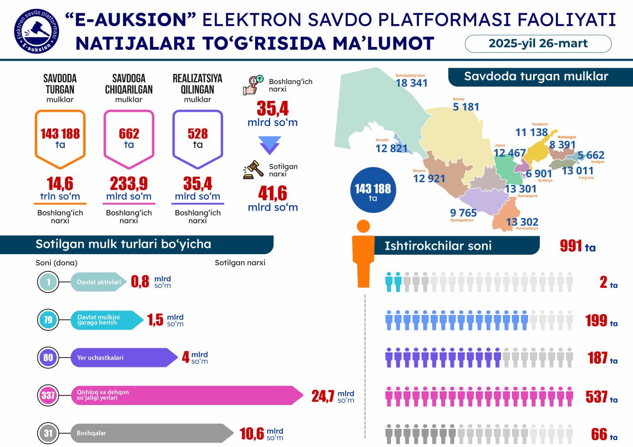 26-mart sanasida o'tkazilgan onlayn savdolar natijasi