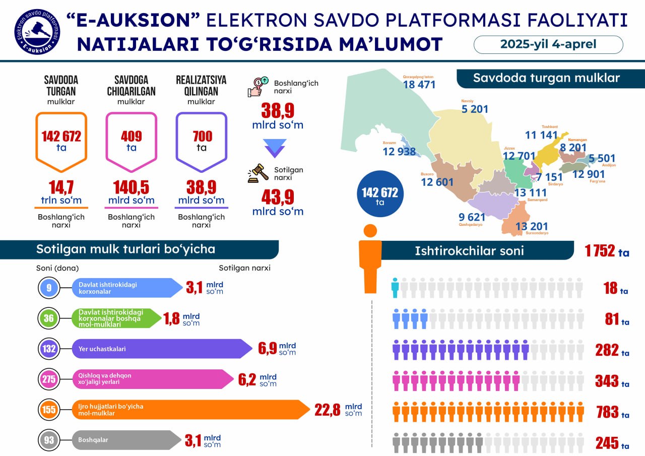 4-aprel sanasida o'tkazilgan onlayn savdolar natijasi