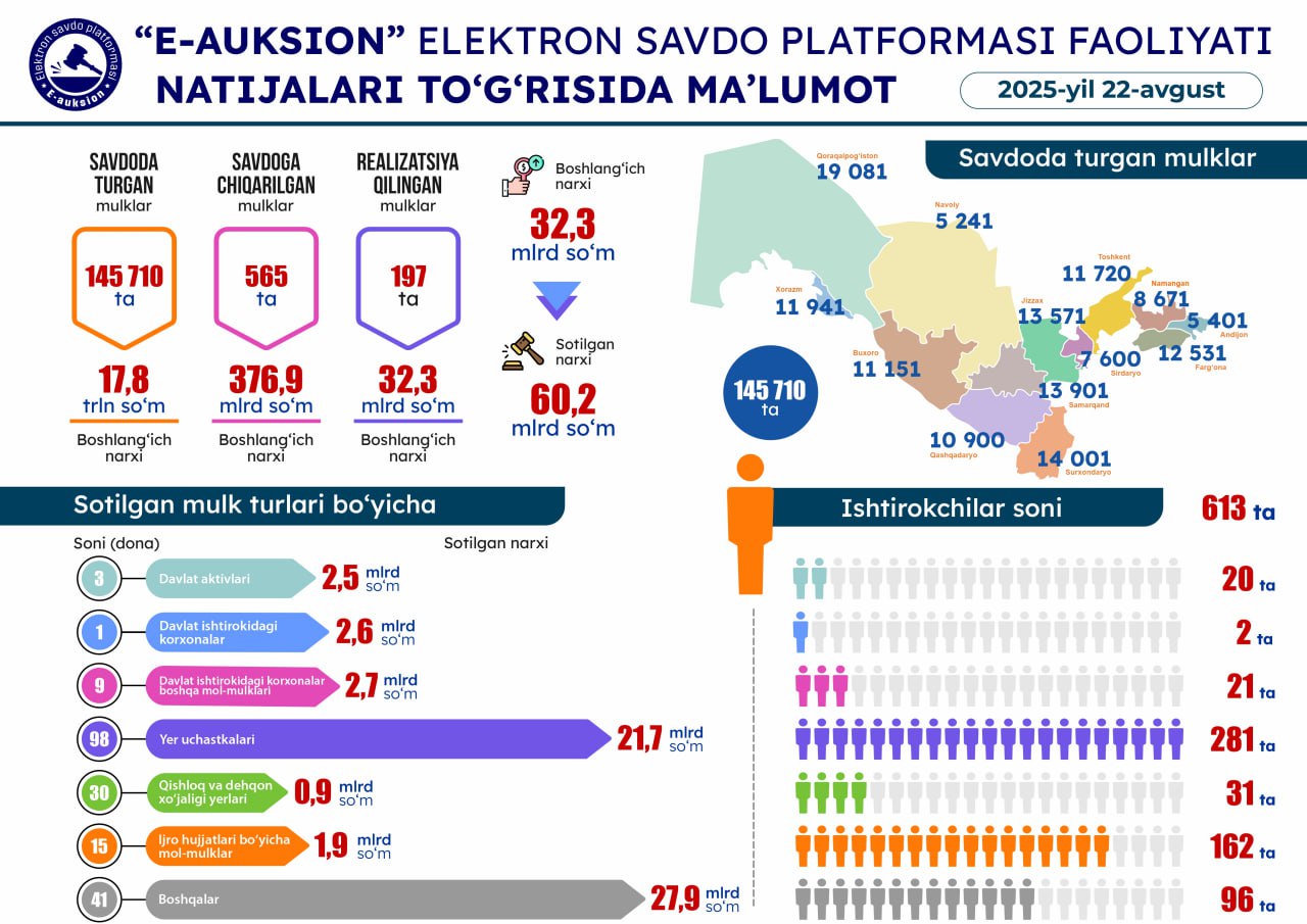 22-avgust sanasida o'tkazilgan onlayn savdolar natijasi22-avgust sanasida o'tkaz…