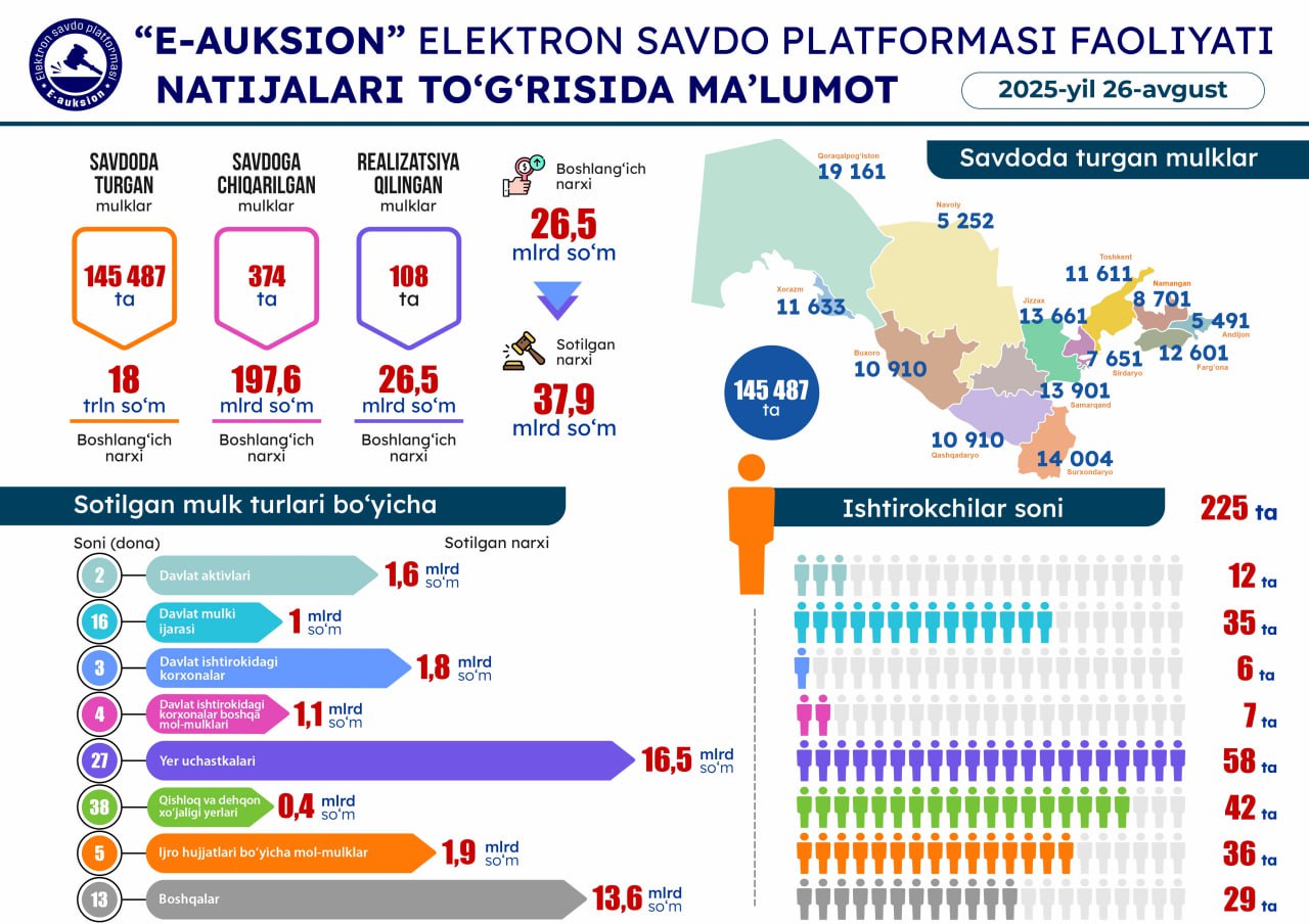 26-avgust sanasida o'tkazilgan onlayn savdolar natijasi26-avgust sanasida o'tkaz…