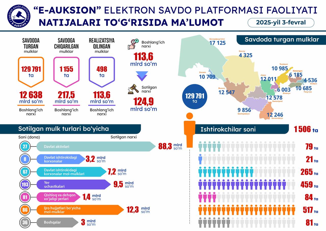 3-fevral sanasida o'tkazilgan onlayn savdolar natijasi