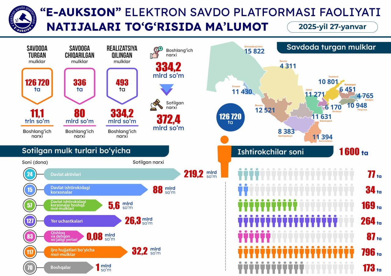 27-yanvar sanasida o'tkazilgan onlayn savdolar natijasi