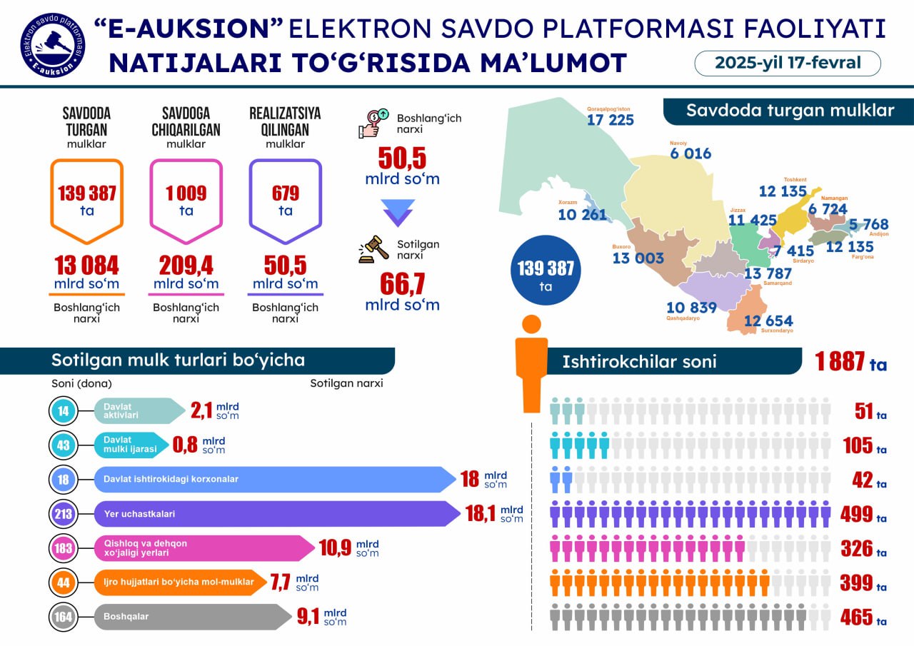 17-fevral sanasida o'tkazilgan onlayn savdolar natijasi