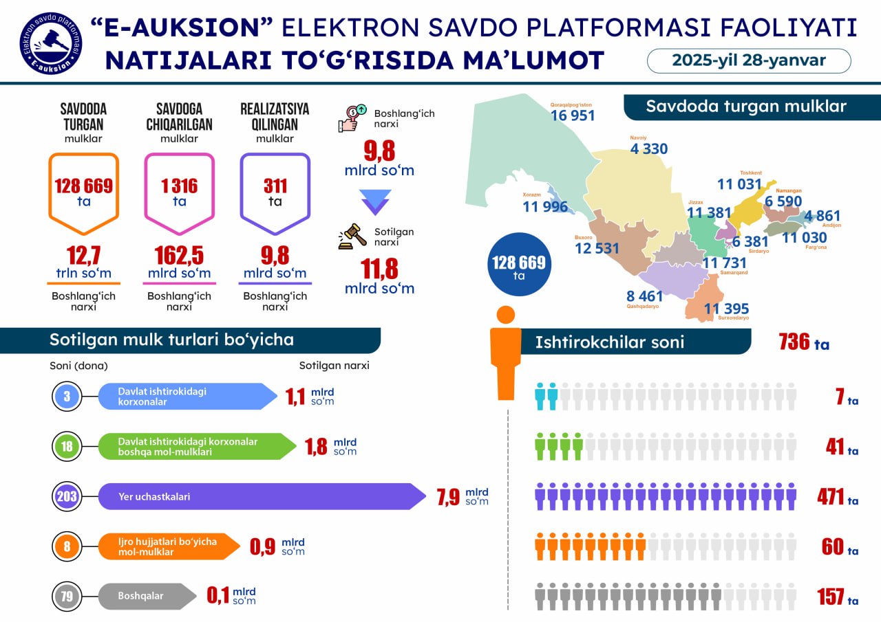 28-yanvar sanasida o'tkazilgan onlayn savdolar natijasi