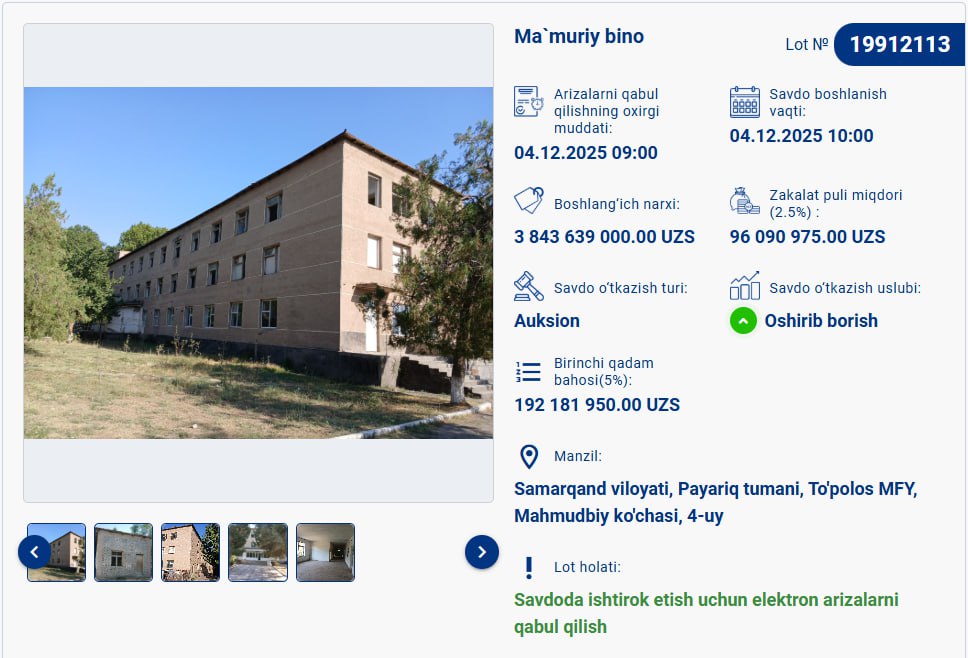 Batafsil: https://e-auksion.uz/lot-view?lot_id=19912113