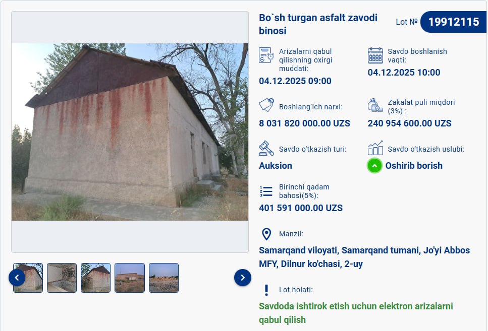 Batafsil: https://e-auksion.uz/lot-view?lot_id=19912115